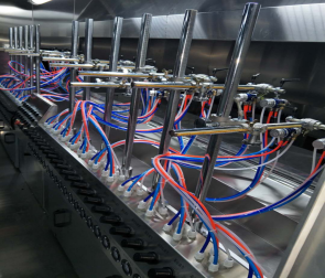 地軌式自動(dòng)噴涂線介紹地軌式自動(dòng)噴涂線也叫固定噴槍噴涂線或spindle自動(dòng)噴涂線,原理就是把噴槍固定起來(lái),根據(jù)工藝要求進(jìn)行噴涂。其功能集地面自動(dòng)輸送線,固定自動(dòng)噴涂,自動(dòng)烘干T等一體化系統(tǒng),并結(jié)合無(wú)塵凈化車間,恒溫控制,廢氣處理系統(tǒng)組成,可以根據(jù)需求設(shè)計(jì)兩涂?jī)煽?,三涂三烤,四涂四烤,再加上UV固化設(shè)備。地軌式自動(dòng)噴涂線特點(diǎn)與優(yōu)勢(shì):1.起到靜電除塵,噴涂、烘干、UV固化自動(dòng)噴涂流水的功能,適合批量連續(xù)生產(chǎn),產(chǎn)量高,噴涂均勻。2.輸送鏈條與軌道接觸點(diǎn)配置軸承,配合精準(zhǔn)的軌道,運(yùn)轉(zhuǎn)時(shí)輕快平穩(wěn)不抖動(dòng),3.靜電除塵系統(tǒng),進(jìn)口高要靜電發(fā)生器,離子風(fēng)嘴可上下前后機(jī)械式調(diào)節(jié),可配合產(chǎn)品大小不同而變化,加上工件自動(dòng),除塵無(wú)360度死角。4.固定式自動(dòng)噴槍可用于步進(jìn)是或者聯(lián)系的在線噴涂,及簡(jiǎn)單又實(shí)用。采用工件高速自動(dòng)噴涂,行程及速度可調(diào)節(jié),靈活性大,無(wú)死角。5.水簾環(huán)保噴房設(shè)計(jì),氣流順暢潔凈,噴房室內(nèi)導(dǎo)流板機(jī)擾流板的精心配置,讓亂流遠(yuǎn)離工件,并快速循環(huán)利用。6.UV固化室內(nèi)設(shè)都說(shuō)進(jìn)口等,任意調(diào)節(jié)照射距離與角度??梢匀我膺x擇燈工作數(shù)量,根據(jù)照射強(qiáng)度選擇,工件自動(dòng)旋轉(zhuǎn)設(shè)計(jì),保證了工件照度均勻。好了,以上就是有關(guān)地軌式自動(dòng)噴涂線介紹,大家學(xué)會(huì)了嗎?